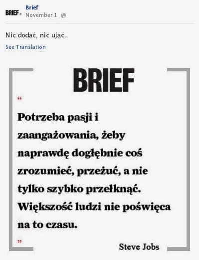Dostałem feedback, że fan page Brief jest nudny, ma nieciekawą komunikację i tak dalej. Na początku pobłażliwie się uśmiechnąłem w stylu „bitch please”. Jednak po chwili naszła mnie refleksja, która skłoniła mnie do napisania tego wpisu.